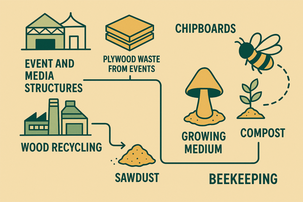 As someone who runs a company specialising in temporary event and media structures, I’ve always been conscious of the waste generated by our industry. It’s a challenge we face regularly, with vast amounts of wood, such as plywood and scaffold boards, used in our structures often discarded after each event. However, I’ve never been one to simply throw things away—there’s always a better way to utilise materials that would otherwise go to waste. This approach isn’t just a business decision, it’s a personal one. I’m a beekeeper too, and through that, I’ve learned the importance of sustainability, interconnectedness, and making the most of what’s available.