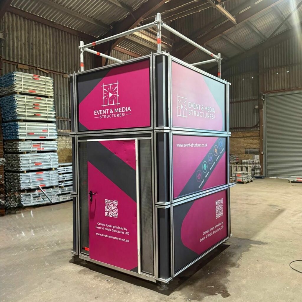 At Event & Media Structures, we supply, hire and install Layher system camera towers across the UK and internationally. Whether you’re broadcasting a live event, capturing footage for film or television, or managing a site-wide visual overview, our towers offer height, stability and versatility — with the quality and compliance you’d expect from Layher’s world-renowned system.