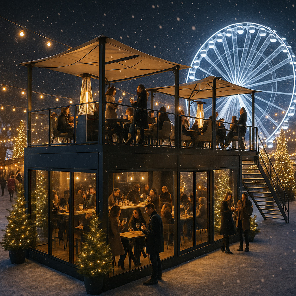 Our Fabox™ modular units offer a robust, fully enclosed solution for winter events. Use them as event control rooms, ticketing hubs, crew welfare spaces, pop-up retail units, or heated VIP lounges. With insulated panels, flooring, doors, and glazing options, they provide comfort and performance even in freezing or wet conditions. Fast to deploy, customisable, and scalable for larger sites or multi-use layouts.
